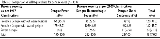 Conclusion: By using 2009 guidelines, a physician would classify more dengue patients as having severe disease.