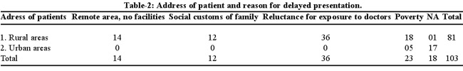Different underlying reasons for delayed presentation are compared between rural and urban population in Table-2.