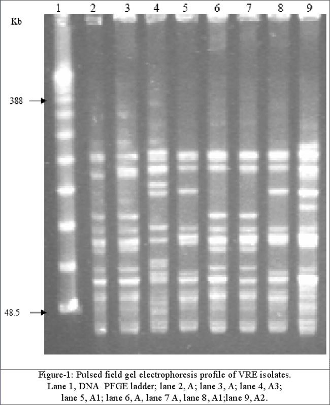 Conclusion: Molecular typing suggested that VRE isolates had same clonal origin indicating nosocomial transmission. Institution of strict infection control measures with active surveillance should be taken to avoid its further spread (JPMA 60:805; 2010).