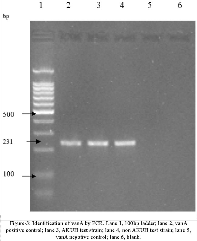 This study was supported by a University Research Council grant; The Aga Khan University, Karachi, Pakistan. Thanks to Dr Fatima Noman for her generous support to provide the VRE strains and Sobia Mohiuddin, Saira Ibrahim and Erum Aziz for giving technical support in molecular work.