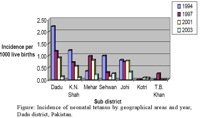 Keywords: Neonatal tetanus, Epidemiology, Surveillance, District Dadu, Case fatality, Incidence (JPMA 61: 1099; 2011).