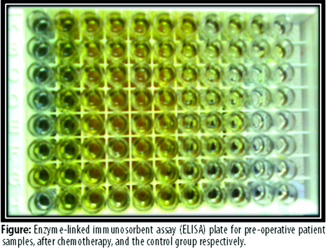 Blood samples were collected from the cases prior to surgical operation for lumpectomy or mastectomy. Samples were again taken from the cases after three cycles of chemotherapy. Blood samples were collected and processed generally within an hour. The samples were centrifuged and stored in multiple tubes at -20°C. Blood samples were also collected from the 20 controls.