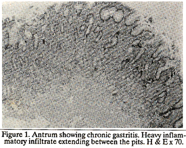 6. Whitehead, R., Trulovc, S.C. and Gear, M.W.L. The histological diagnosis of chronic gastritis in fibreoptic gastroscope biopsy specimens. J. Clin. Pathol., 1972; 25:1.