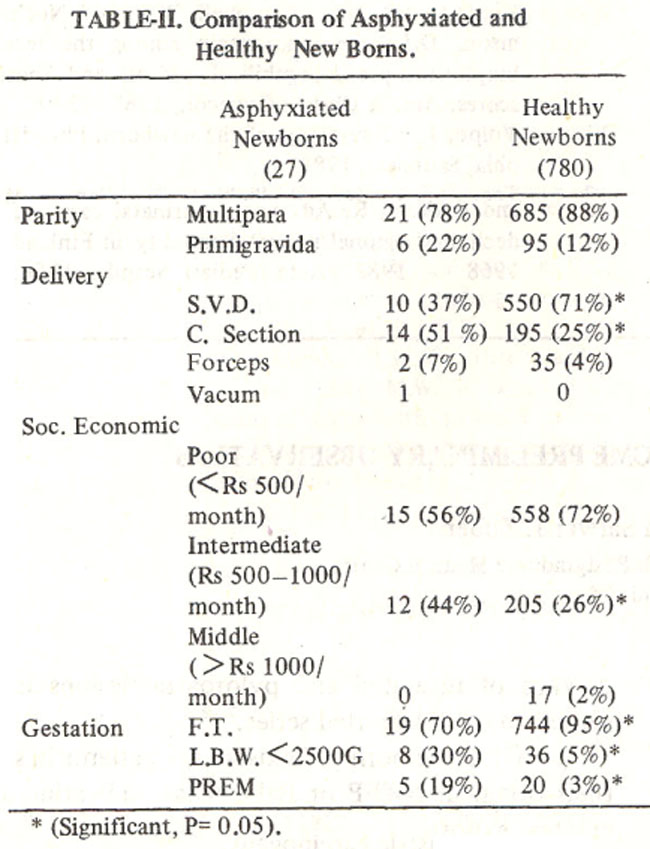 Comparison of 27 asphyxiated newborns with the rest is given in Table- II.