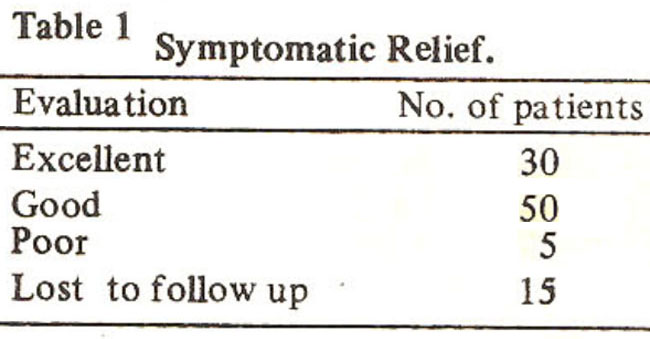 There was excellent to good symptomatic relief following administration of the drug within two weeks of starting cimetidine in eighty patients while poor response in five patients (Table I).
