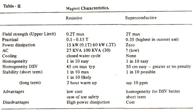 Table II gives the characteristic of both resistive and superconducting magnet (Holland, 1983).