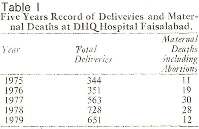 A survey of maternal and infant mortality carried out in the rural and urban areas of Faisalabad revealed figures found to be the highest in the world. The maternal mortality was 10 in every 1000 cases and infant mortality being 180 in 1000 (Bashir, 1979). To improve the health care for pregnant women, refresher courses for the traditional birth attendants TBAs-Dais, both trained and untrained were organised. These TBAs and Dais are usually illiterate and carry out the duties of a mid-wife because there is an acute shortage of trained personnel.