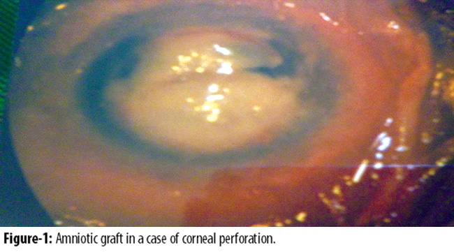 In case of perforated corneal ulcers, 2-3 layers of graft were applied after folding them on each other (Figure-1).