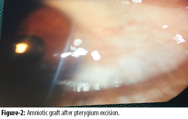 Prabhasawat initially mentioned advantages of applying amniotic graft in cases of pterygium. After that there have been many reports of applying amniotic graft in cases of pterygium with no recurrence.18