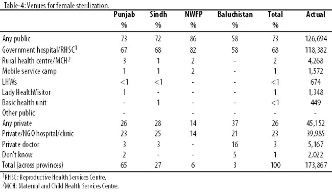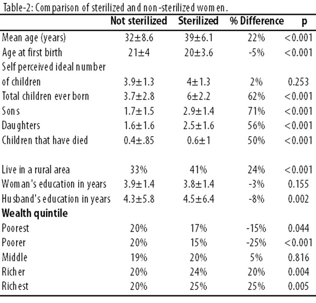 They begin having children a year before unsterilized women and are twice as likely to have had a child die. Sterilizations are far more common in rural locations and in Punjab province (Table-3).