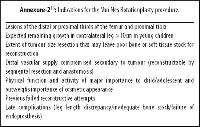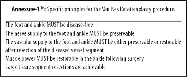 Though a Van Nes rotationplasty is cosmetically disfiguring, this is offset by good ambulatory function achieved provided its specific principles and indications are kept in mind (Annexure-1-2).16