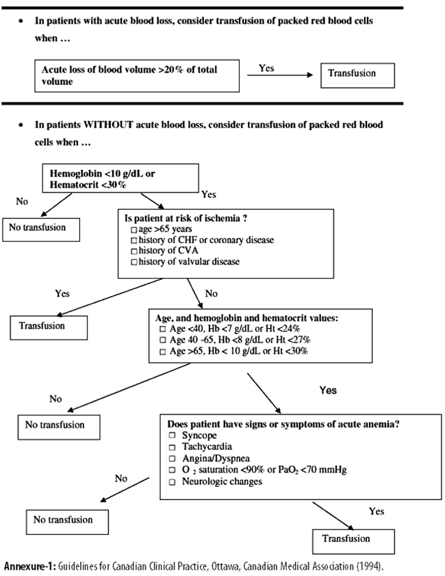 We compared our transfusion practices with the guidelines of the Guidelines for Canadian Clinical Practice, Ottawa, Canadian Medical Association, 1994 (Annexure-1).