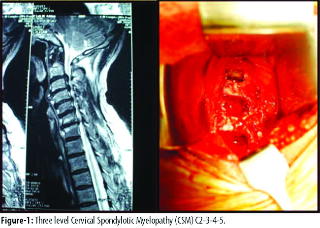 Multi-level cervical laminectomy with instrumented fusion for patients with CSM has been shown to improve neurological status in majority of the cases.10 In the present study 61 patients were treated with laminectomy with instrumented spinal fusion using autologus bone graft (Figure-5).