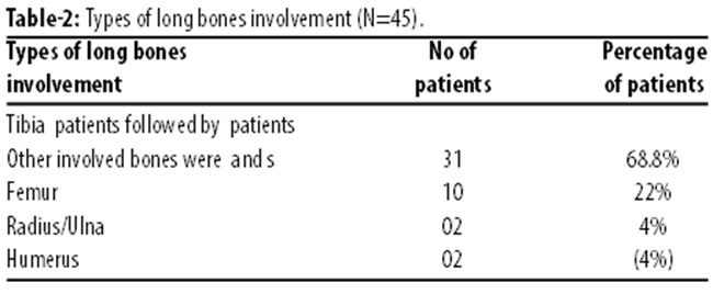 Keywords: Non-unoin, Long bones, Tibia, Infection, Ilizarov, External fixator. (JPMA 65: S-94 (Suppl. 3); 2015).