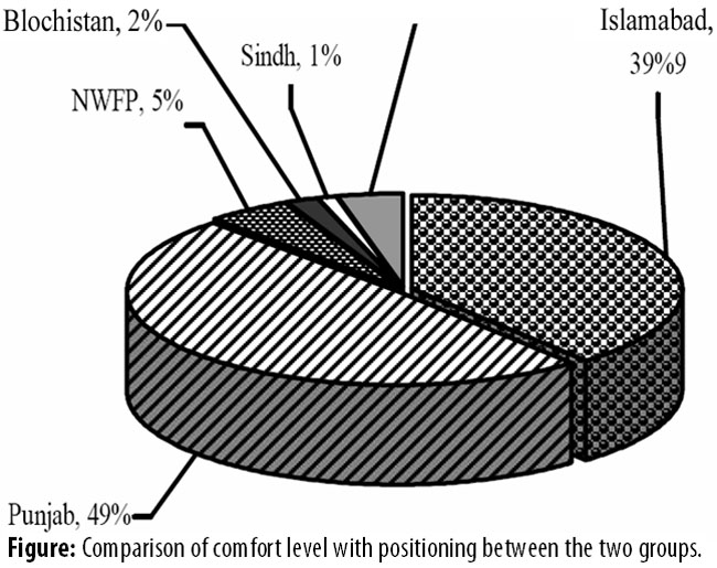 Thirty-nine percent were residents of Islamabad capital tertiary, while 49% were from Punjab, 5% from NWFP, 2% from Baluchistan, 1% from Sindh, and 4% living abroad (Figure-3).